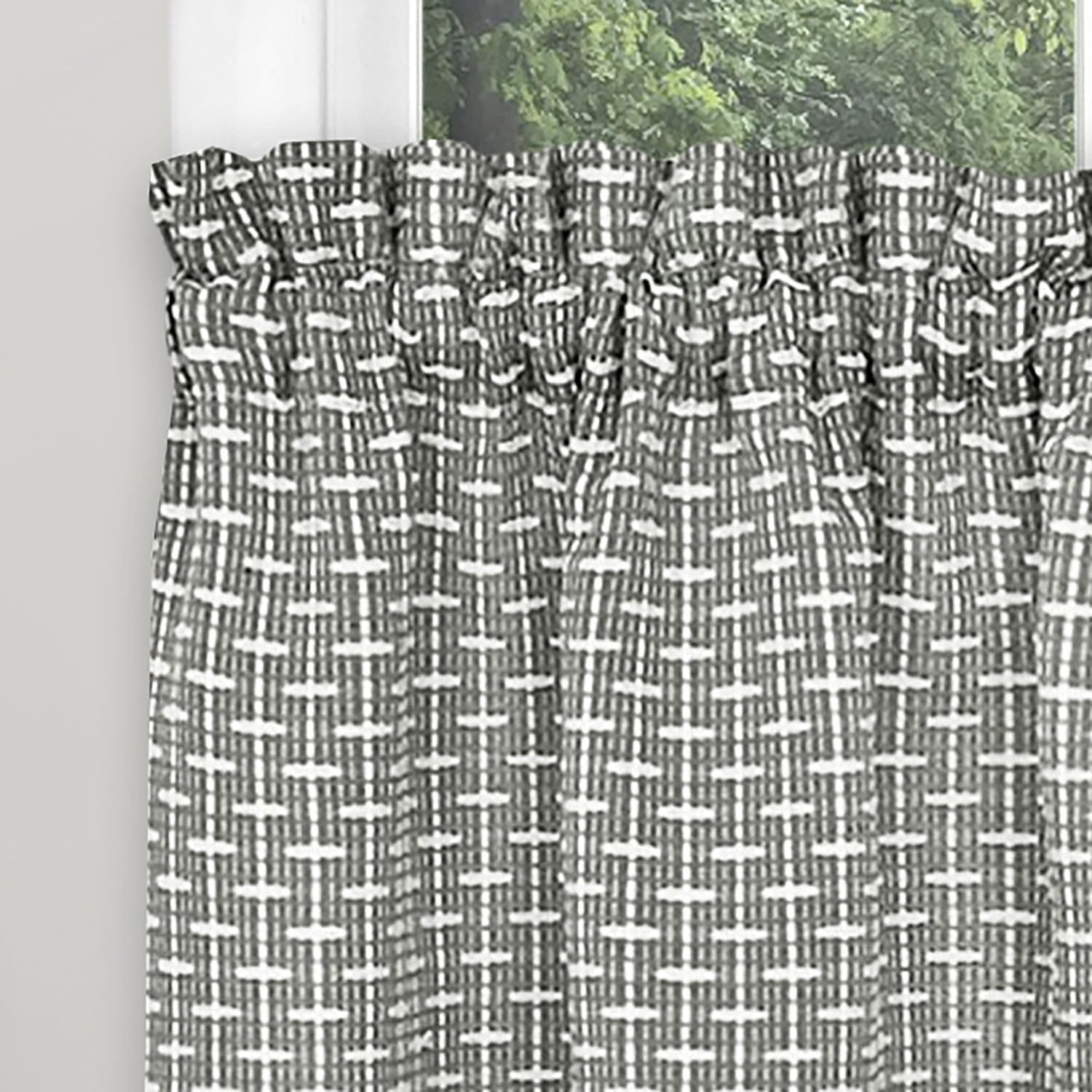 ACHIM Bedford Front Tab Window Curtain Tier Pair Set - 58 Inch Width, 24 Inch Length, 2-inch Rod Pocket - Grey - Light Filtering Fabric with Yarn Dyed Woven Accents & Machine Washable Home Décor—