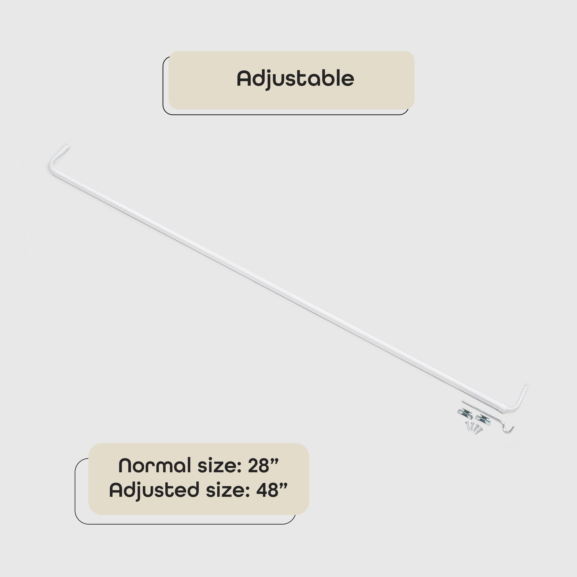 ACHIM Fantasia 28-48 Inch Adjustable Width Single Curtain Rod for windows with Brackets & Hardware - Easy to Install, White