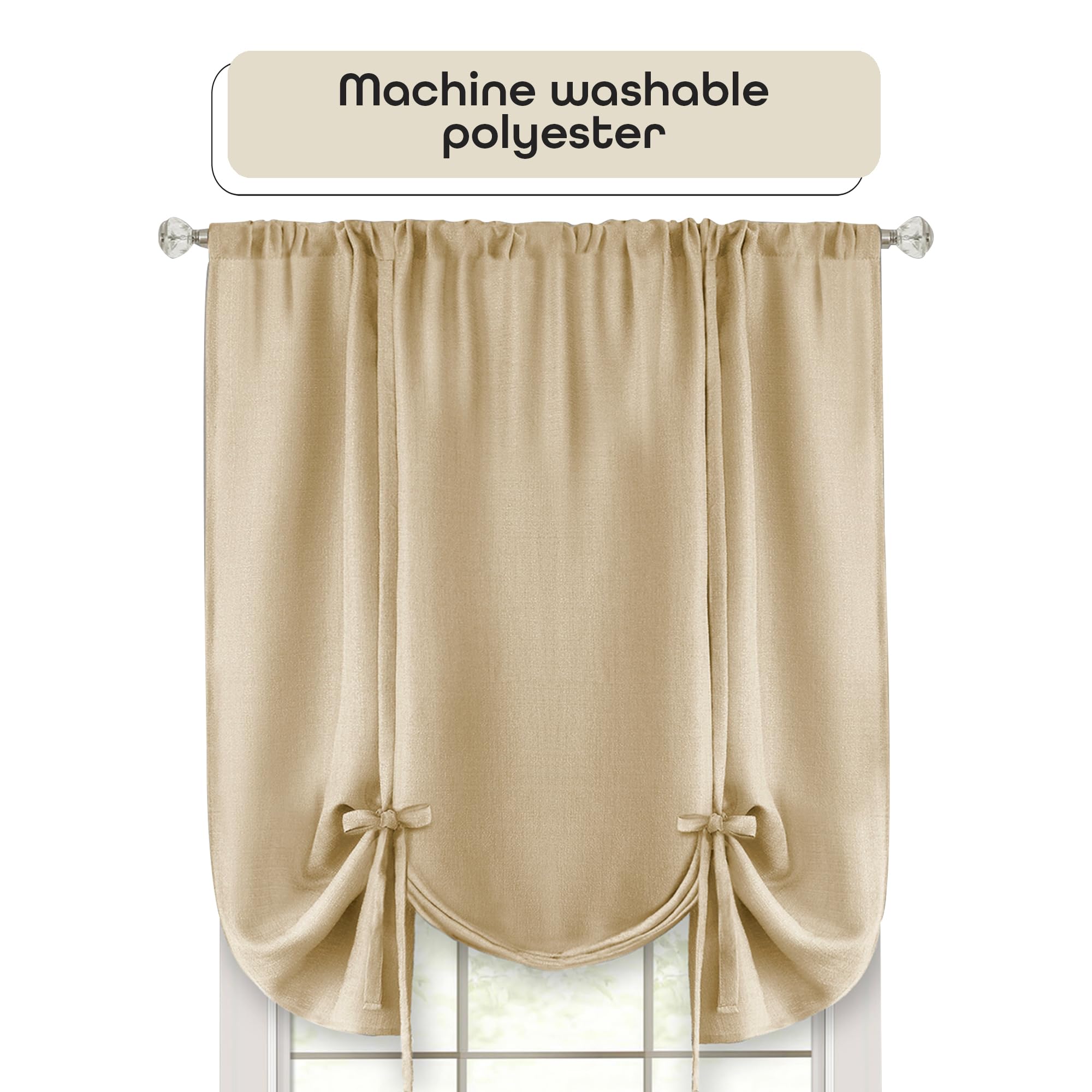 ACHIM Light Filtering Darcy Tie-Up Window Shade - 58 Inch Width, 63 Inch Length (Tan) - Machine Washable & Easy to Clean Polyester Curtain Drape for Kitchen, Living, & Dining Room Home Decor—