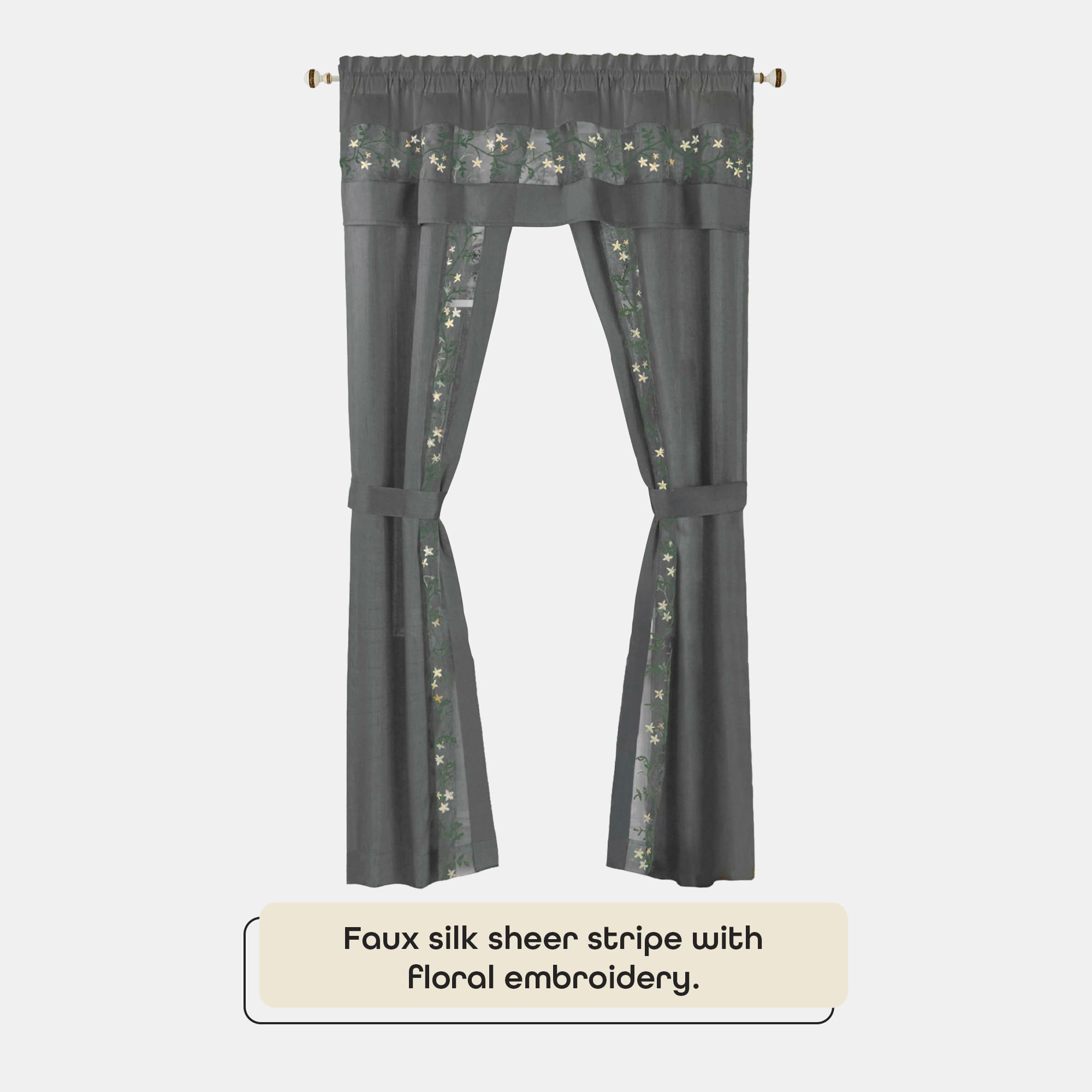 - Upgrade Your Home Decor: The engineered faux silk, sheer stripe with floral embroidery brings this window set to life.