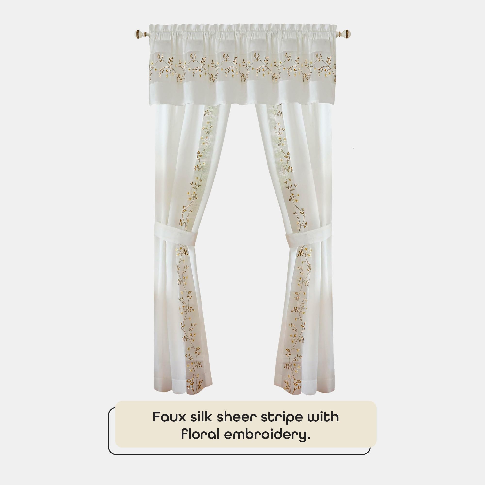 - Upgrade Your Home Decor: The engineered faux silk, sheer stripe with floral embroidery brings this window set to life.