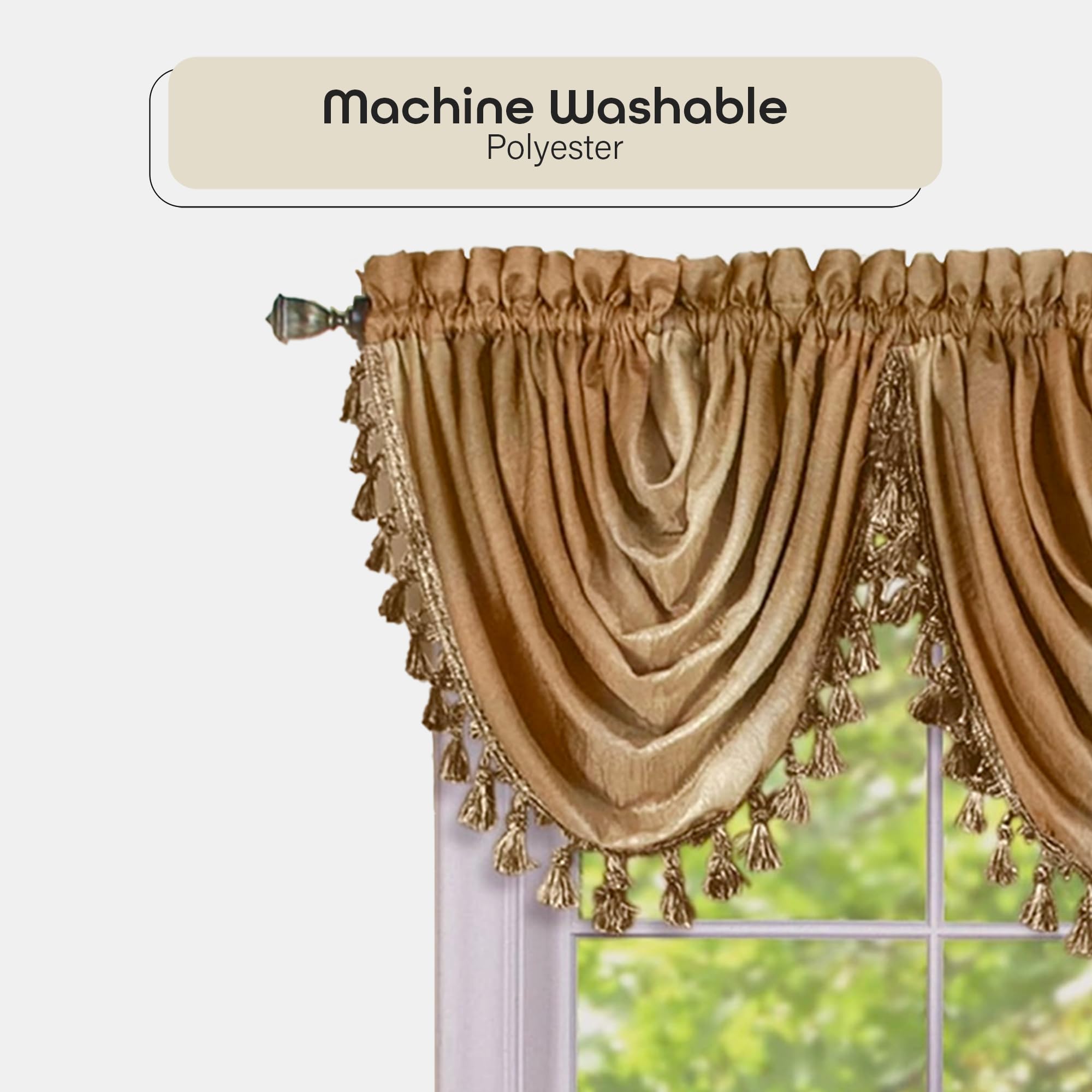 - Upgrade Your Home Decor: To create the waterfall drape, each triangular shaped valance is hung from two, 2-inch rod pocket edges both with a 1.5-inch header. Looks beautiful hung at narrow or wide widths, experiment with multiple valances to suit your preference. and drapes beautifully.