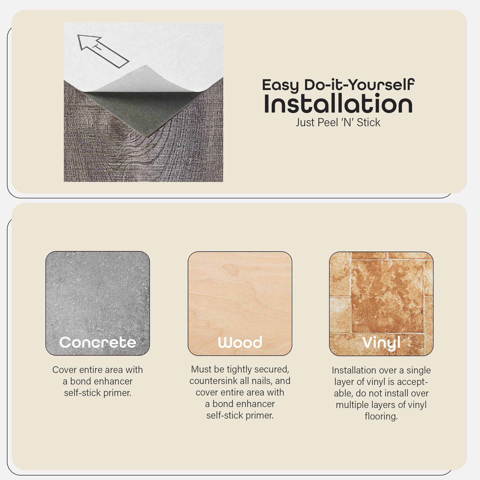 - Peel ‘N’ Stick: The Sterling Floor Planks feature easy DIY installation. Simply peel and stick the planks to a flat and dry surface to give your home a brand-new look.